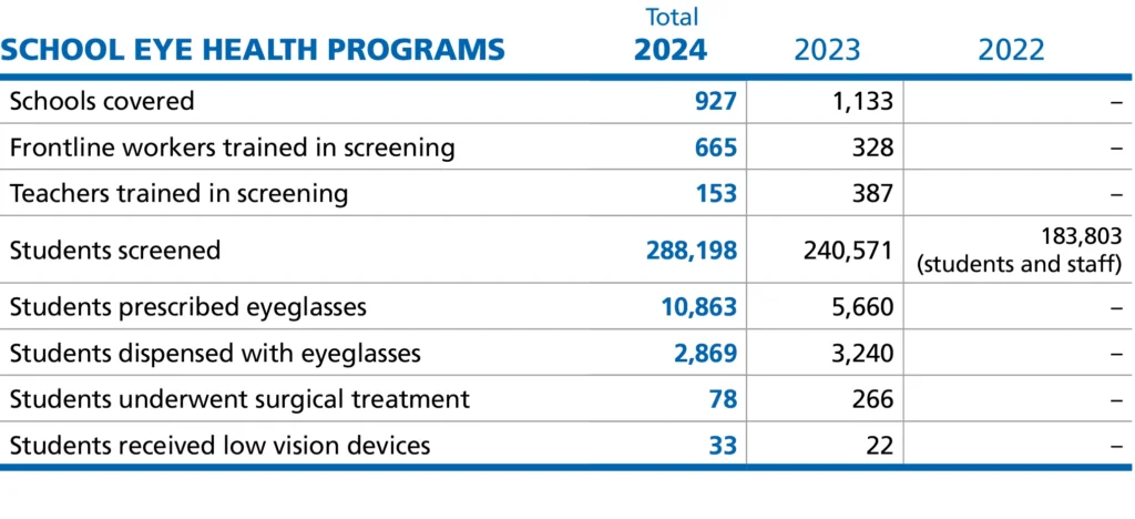 In 2023, we screened more than 240,000 children from 1,133 schools across our countries of work through our school eye health programs.