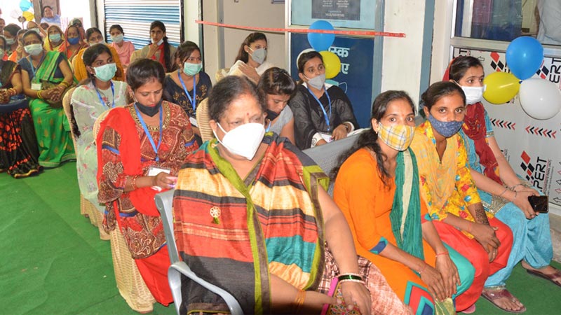 A group of female community health workers attend the inauguration of C.L. Gupta Vision Centre in India.