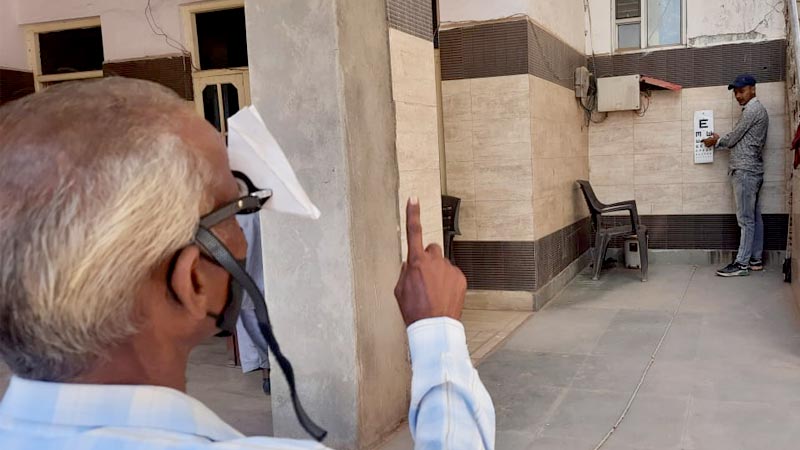Free eye screening camp at the Rotary Eye Hospital in Narsoo village, Uddhampur district of Jammu and Kashmir, India. Thirty-two patients received a free pair of prescription eyeglasses.